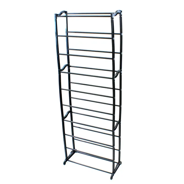 • Fekete, 10 szintes fém cipőtartó polc 30 párhoz, 140 cm