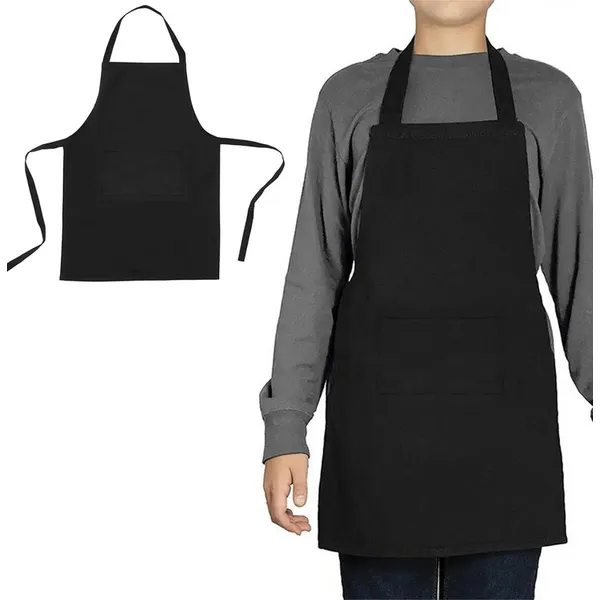 • Fekete konyhai kötény poliészterből, zsebes, nyakba akasztható