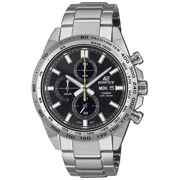 • Casio Edifice férfi kronográf óra, acél szíj, WR100, fekete számlap