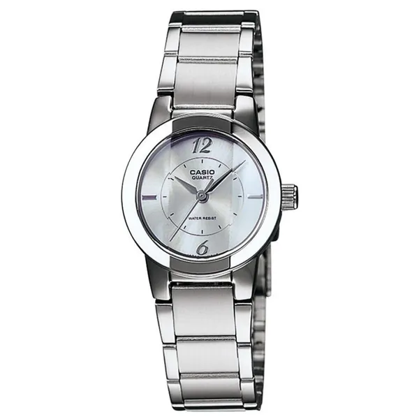 • Casio női kvarc karóra ezüst számlappal, acél szíjjal, dátummal WR30