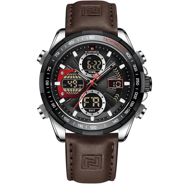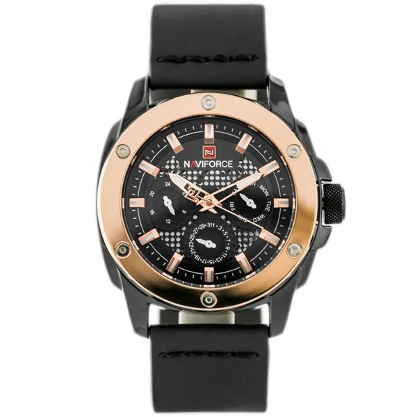 • Férfi Naviforce NF9197L kvarc karóra bőr szíjjal, fekete számlap, ajándékdoboz
