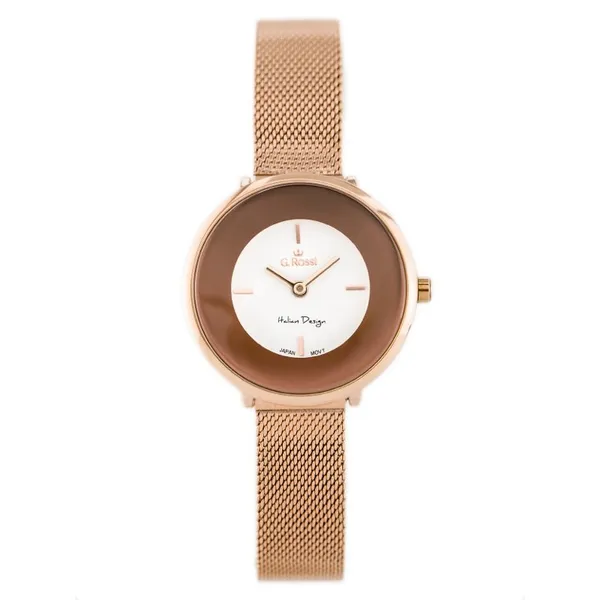 • Női kvarc karóra rose gold fém szíjjal, ezüst számlappal (35 mm) – díszdobozzal