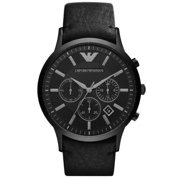 • Emporio Armani férfi kvarc karóra, fekete bőrszíj, kronográf, WR50