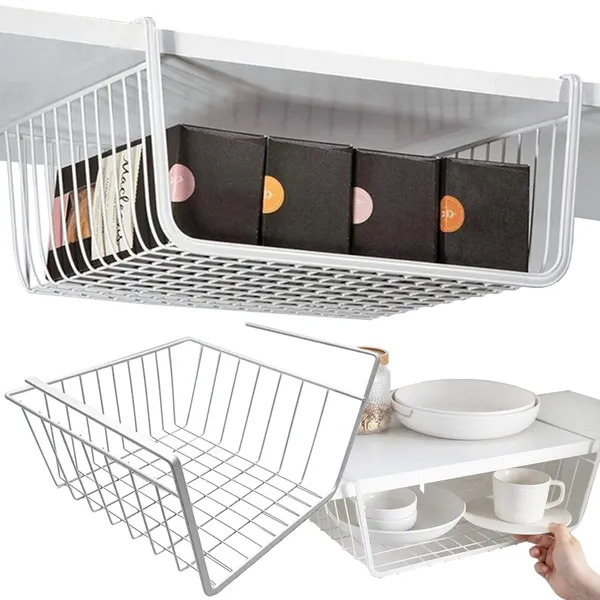 • Polc alatti fehér fém kosár szervező